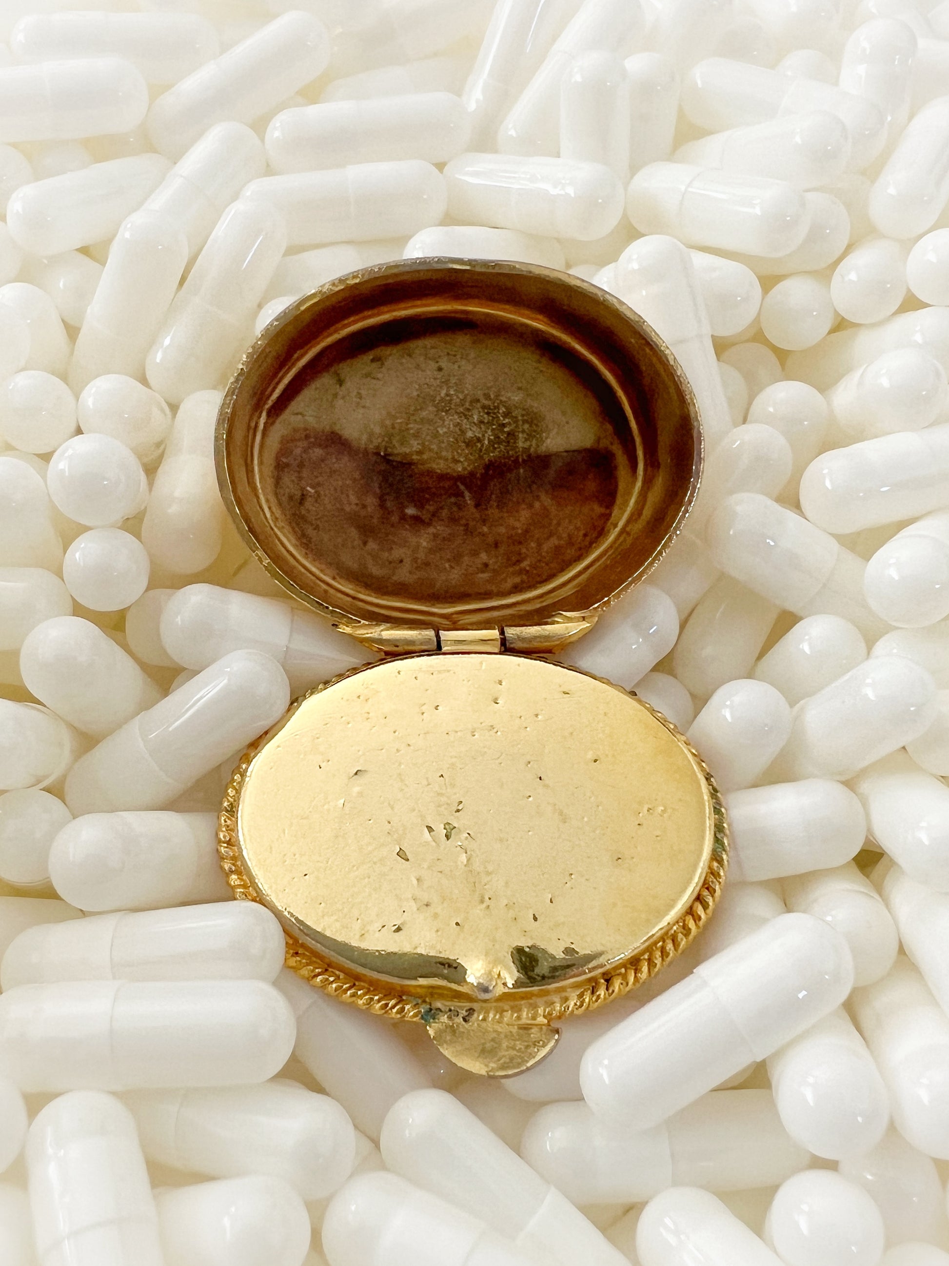 Encased in a gilt metal frame with a rope-edge border, the box carries the patina and character of a piece that has traveled across decades. The subtle irregularities in the glasswork and gentle signs of age are not flaws, but treasured marks of authenticity, reminding us of the artisan’s hand and the history it has lived.