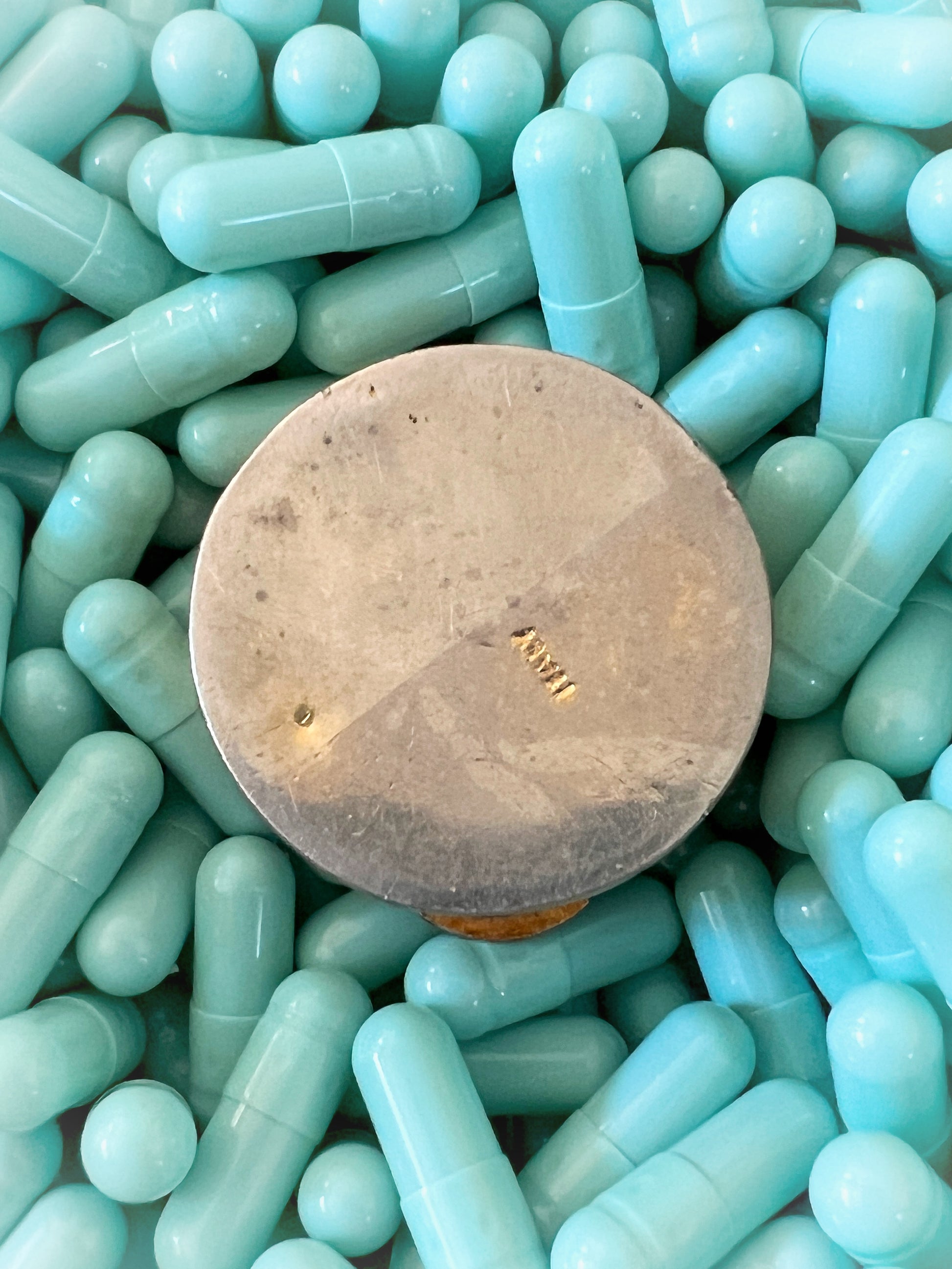 - Size: approximately 3.5cm across and 1.5cm tall (medium)